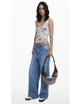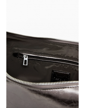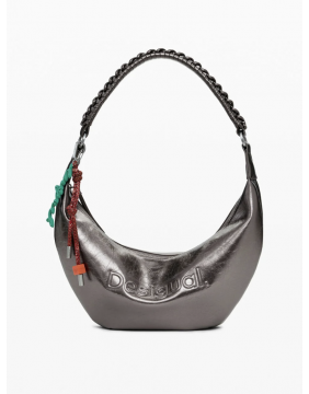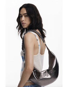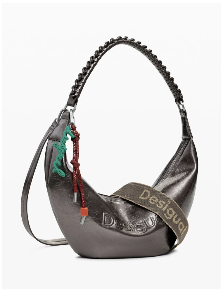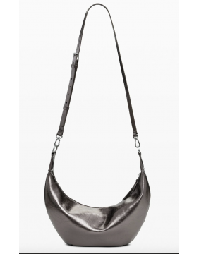 This fab metallic 'half moon' bag, comes with interchangeable straps and removable bag charm. Great dark silver/pewter metallic finish means it goes with pretty much every outfit!