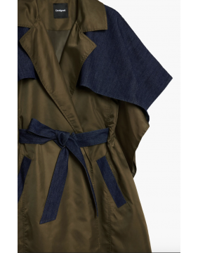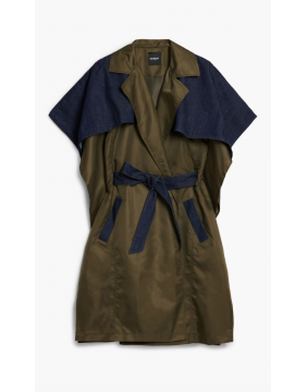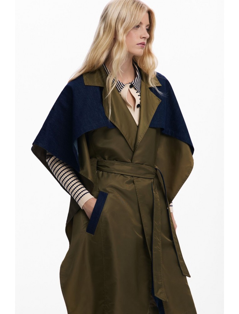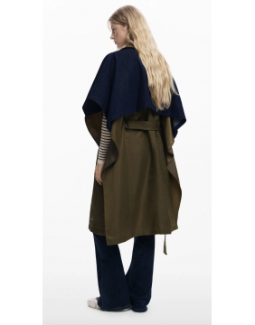 Stylish and FUN - coats do not have to be boring! This cape has trench styling, and is a great mix of materials - adding texture and interest. The way the belt cuts through the design means that it gives a great shape.